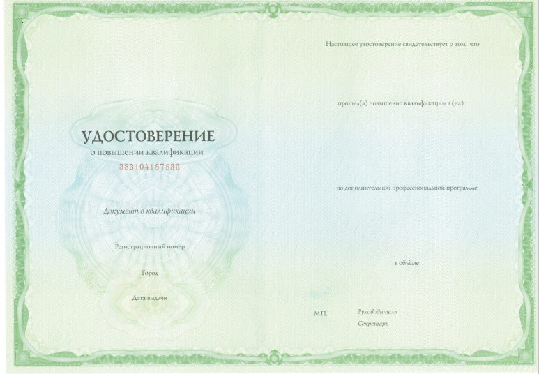 Итоговый документ: удостоверение о повышении квалификации установленного образца